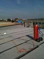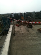 Nord Schule Fürstenfeldbruck versehen. Desweitern müssen wir im Dachrandbereich die Betonattika bestehend aus Waschbetonplatten demontieren. Diese haben ein Gewicht von ca. 2,8 t pro Stck. Umlaufend sind das 37 Stck. Diese werden von uns mit einem 90 t Autokran vom Dachrand geholt und entsorgt. Es werden ca. 100 t Holz, 60 t Dachpappe und 2 t Styropor ausgebaut und entsorgt. | ||||||||||||||