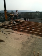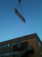 Nord Schule Fürstenfeldbruck versehen. Desweitern müssen wir im Dachrandbereich die Betonattika bestehend aus Waschbetonplatten demontieren. Diese haben ein Gewicht von ca. 2,8 t pro Stck. Umlaufend sind das 37 Stck. Diese werden von uns mit einem 90 t Autokran vom Dachrand geholt und entsorgt. Es werden ca. 100 t Holz, 60 t Dachpappe und 2 t Styropor ausgebaut und entsorgt. | ||||||||||||||